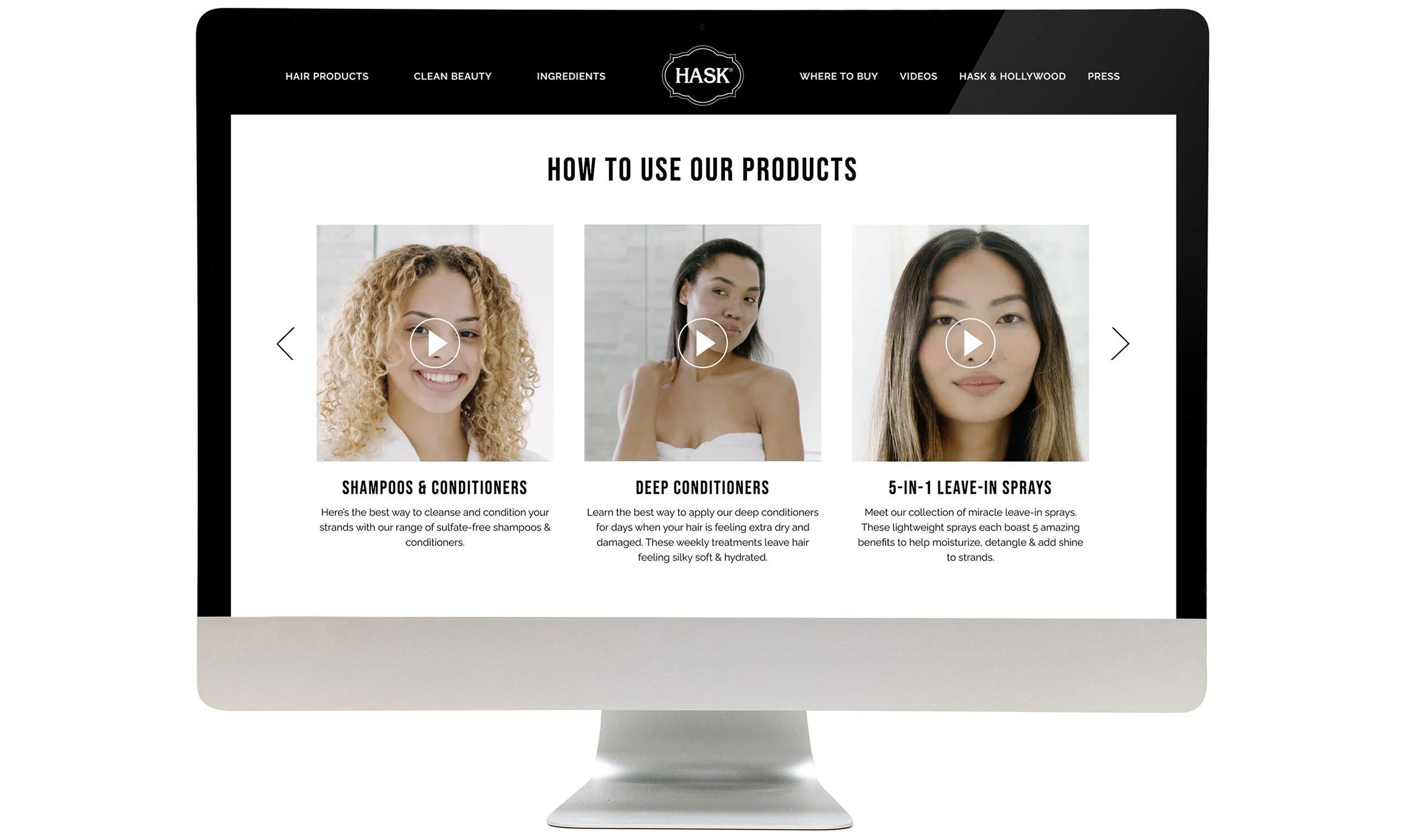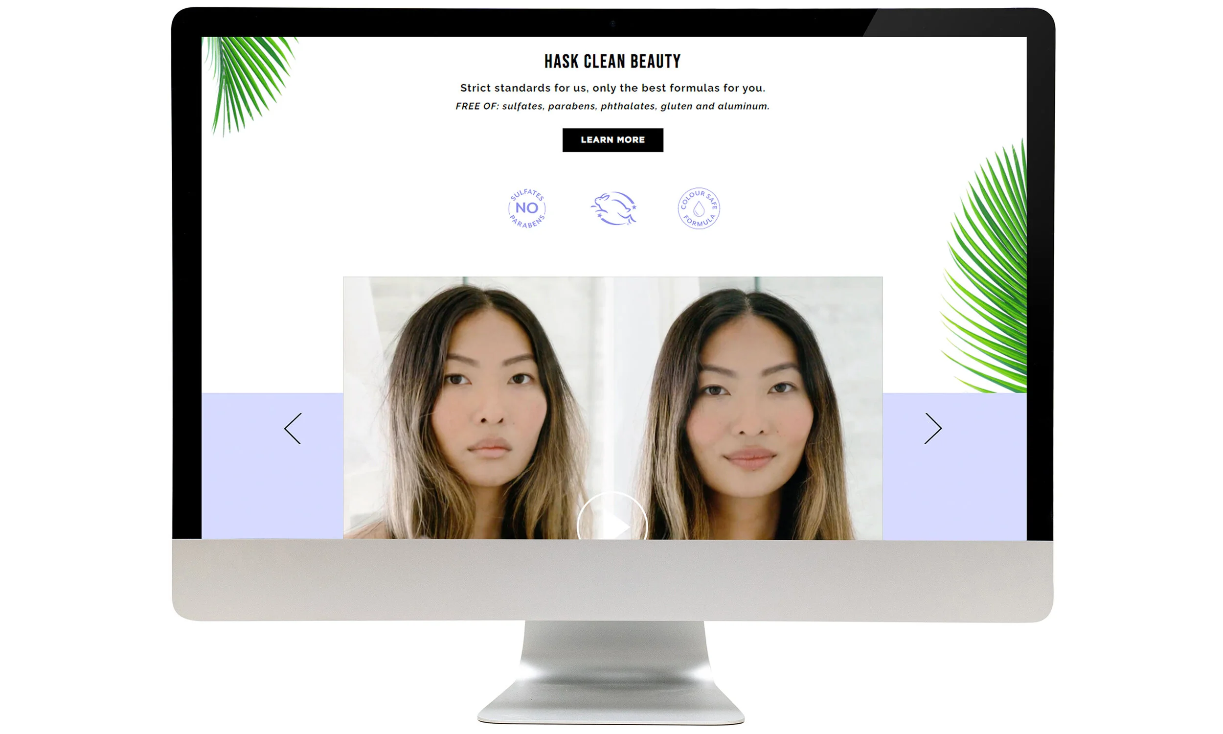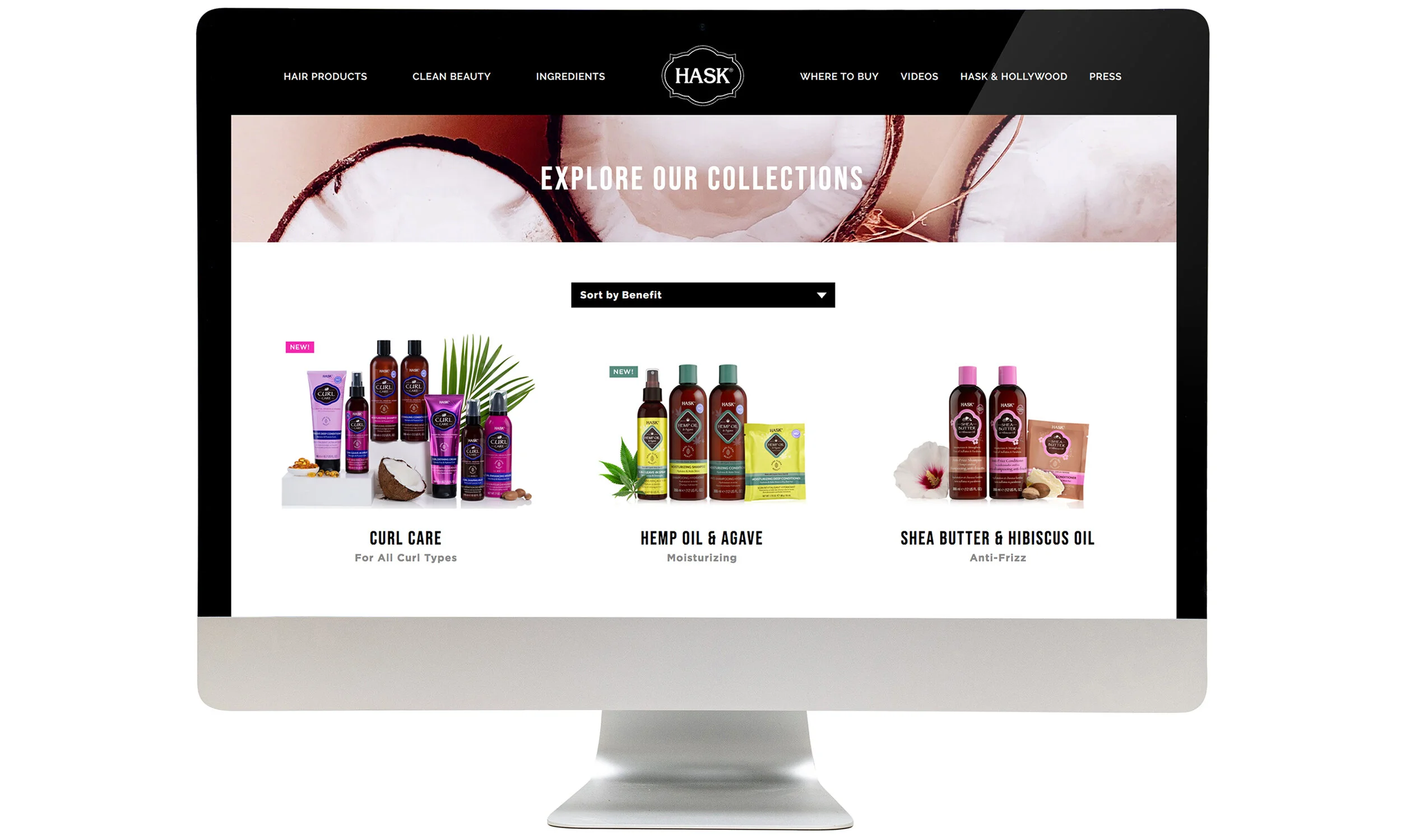 HASK Beauty's mission is to create high quality hair care that’s tested for efficacy and formulated without the bad stuff. I designed the website layout that speaks to their Clean Beauty promise by highlighting natural ingredients and using a subtle purple color throughout.